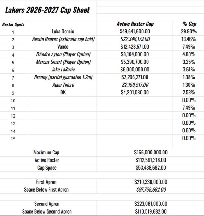 湖媒Tony Vega寫道:2026年夏詹姆斯可以釋放5950萬的空間,八村壘則可以釋放2730萬的空間,如果湖人不再留用詹姆斯、八村,那么湖人在2026年夏就有足夠的薪金空間來運作。