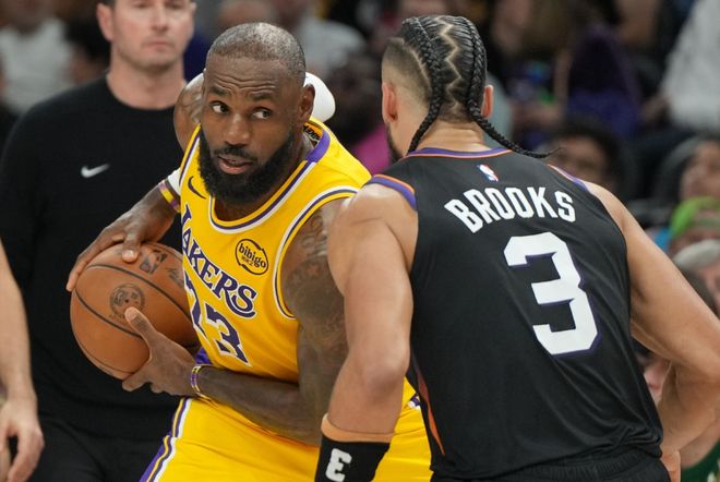 如果單純以球權占有率評價老詹,難免有失偏頗,因為里夫斯不在,老詹必須站出來貢獻更多得分。但有一個細節值得深思,和火箭的比賽,當火箭球員申京即將出手時,老詹就已經往對方半場跑了,準備下快攻。可以說他細節意識把握到位,但把自家籃下留給了對方。而高階數據其實更尷尬,本賽季詹姆斯在場時,湖人百回合凈效率值-7.1;他不在場時,球隊凈效率值+2.5,老詹On-Off值為-9.6,其中進攻端差距不大,但防守端,詹姆斯在場防守效率是125.8,他不在場時球隊防守效率是116.8,所有數據《BR》可查。