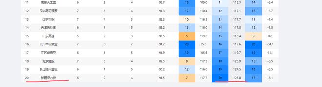 新疆男籃上賽季百回合失分107.9分,聯盟第四少;本賽季6場過后,他們百回合能失125.8分,聯盟墊底。該數據可充分說明,新疆男籃本賽季的防守質量低下,球隊缺乏精氣神。