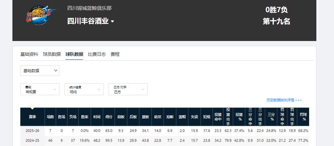 命中率方面:上賽季,四川隊投籃命中率42.8%,本賽季只有37.4%;上賽季三分命中率32%,本賽季只有24.8%。他們的進攻效率已嚴重低下。7場過后,四川隊也成了聯盟唯一一個沒有勝場的球隊。他后期雖已引進外援,但恐怕也無力回天。