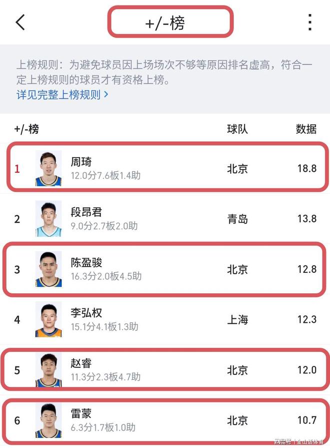 值得一提的是,北京首鋼由于陣容強大,場上即戰力恐怖,因此每場比賽,幾乎都出現一邊倒的優勢。當翻開CBA球員場上正負值榜,在正負值前6的本土球員中,北京首鋼男籃,竟然占了4人。周琦(北京隊)以+18.8,排在榜首;段昂君(青島隊)以+13.8,排在第二;陳盈駿(北京隊)以+13.8,排在第三;李弘權(上海隊)以+12.3,排在第四;趙睿(北京隊)以+12,排在第五;雷蒙(北京隊)以+10.7,排在第六。全聯盟正負值本土前六,北京首鋼占了四人,著實有點牛逼了。